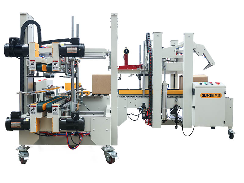 封箱機(jī)主要適用于紙箱的封箱包裝,既可單機(jī)作業(yè),也可與流水線配套使用,它可單箱作業(yè),也可與紙箱成型開箱機(jī)、裝箱機(jī)、熱收縮包裝機(jī)、打包機(jī)、棧板堆疊機(jī)、纏繞機(jī)等設(shè)備配套成包裝流水線使用,為包裝流水線作業(yè)必須的設(shè)備。
