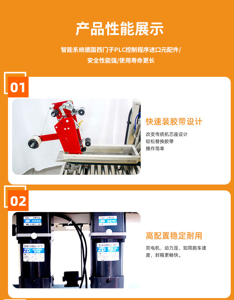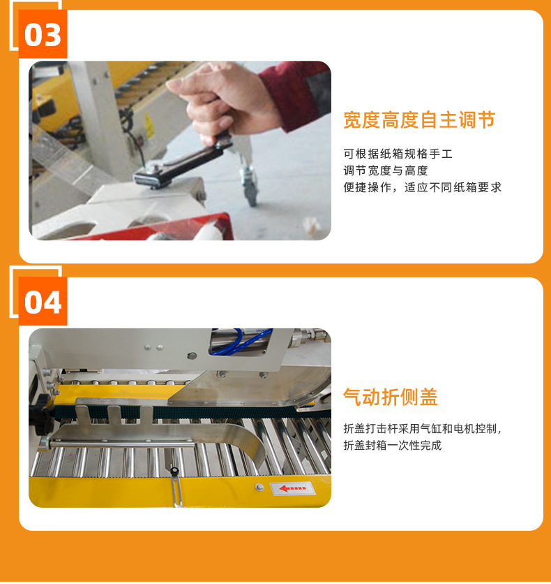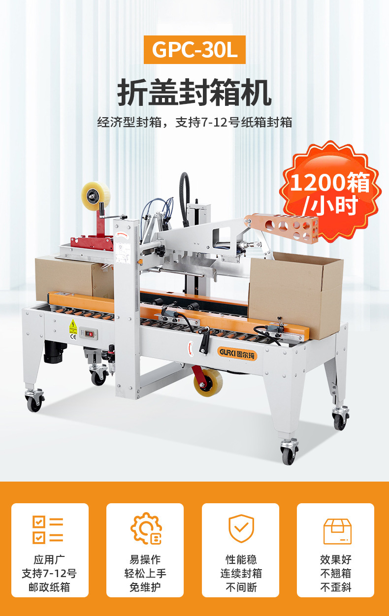 電商小紙箱自動(dòng)折蓋封箱機(jī),自動(dòng)折上蓋,上下自動(dòng)貼上膠帶,無需人手作業(yè);采用即貼膠帶紙箱封口,封箱效果平整、美觀,封口膠帶預(yù)留5cm,每分鐘可達(dá)18箱,滿足倉儲(chǔ)出庫運(yùn)輸打包需求。同時(shí),可配套貼標(biāo)機(jī),稱重機(jī),捆扎機(jī),纏繞機(jī)使用。