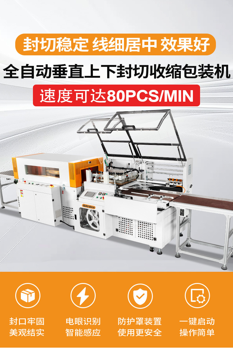 全自動邊封收縮包裝機是針對化妝品批量性生產包膜而設計的一款中速型全自動封切包裝機,整機配有PLC程序系統(tǒng),采用光電對產品進行自動偵測,物品長度自動調節(jié)送料長度,自動對產品進行套膜封切收縮,檢測開關控制電機自動卷收廢膜。從而實現(xiàn)無人化自動包膜的特點,該機工作效率高,針不同大小的產品,速度3-35件每分鐘。