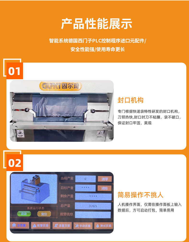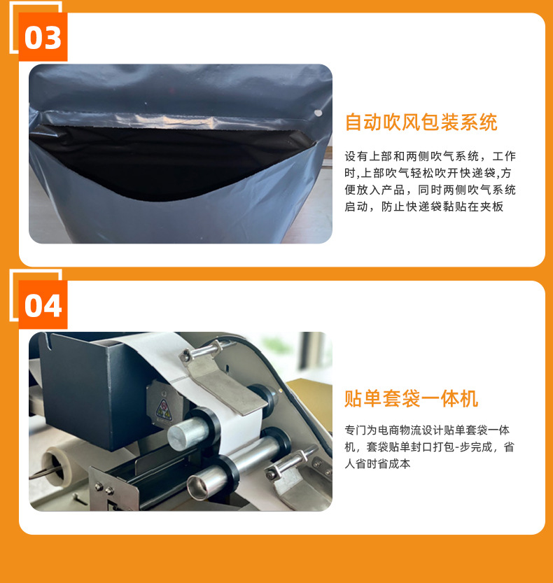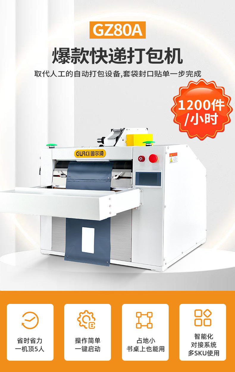 本產(chǎn)品為電商客戶量身訂做,提供自動掃描、自動套快遞袋、對快遞袋實現(xiàn)自動封口、自動粘貼面單以及貨品自動輸送等一體化解決方案。同時,該設(shè)備采用精加工生產(chǎn)工藝,采用臺面式設(shè)計,更符合人體工程美學(xué),減少占地面積,滿足中小電商物流企業(yè)每日500-3000單發(fā)貨需求。觸摸屏操作面板,調(diào)節(jié)簡單,換人交接更方便,該機適用多種連卷膜,速度可達1500袋每小時,亦可根據(jù)客戶需要,自動對接電商訂單和企業(yè)ERP 或 WMS 系統(tǒng),為客戶提供貨品的塑料袋包裝發(fā)貨整體解決方案。