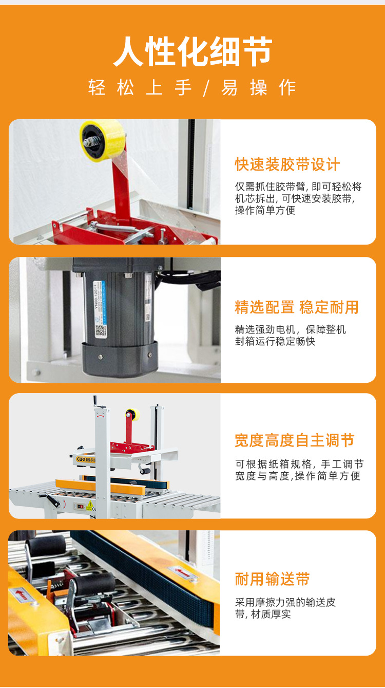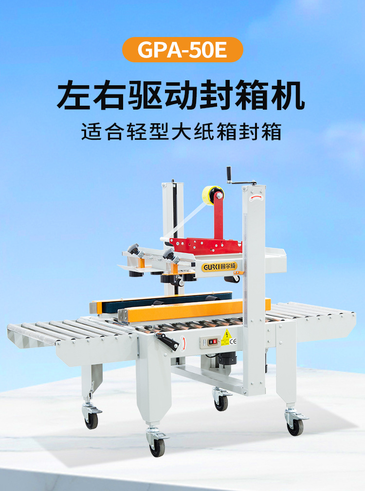 左右驅(qū)動(dòng)封箱機(jī)GPA-50E是兩側(cè)皮帶驅(qū)動(dòng),采用即貼膠帶封口,封箱效果平整??筛鶕?jù)紙箱規(guī)格,手工調(diào)節(jié)寬度與高度,簡(jiǎn)單,快捷,方便 可替代人工,是企業(yè)節(jié)省成本,提高生產(chǎn)效率的理想選擇。該款封箱機(jī)廣泛應(yīng)用于食品、醫(yī)藥、玩具、煙草、日化、電子等行業(yè)。