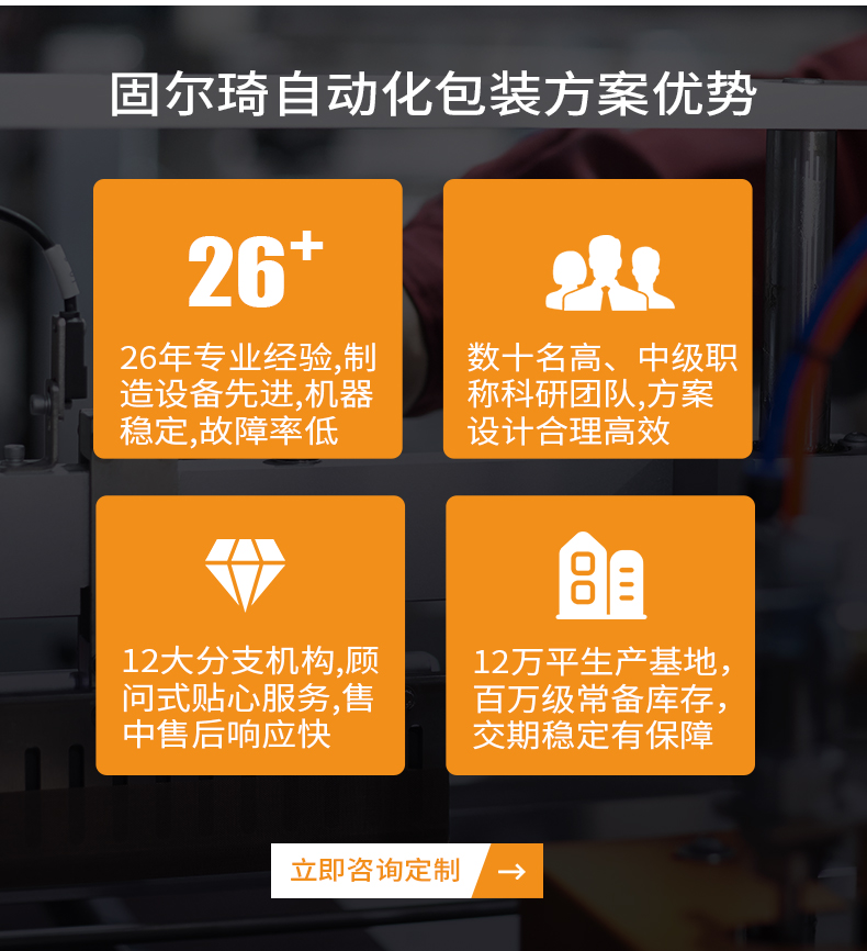 自動(dòng)四角邊封箱機(jī)是紙箱經(jīng)前段封箱機(jī)中間上下封口后,進(jìn)入90度轉(zhuǎn)角機(jī)構(gòu),光電感應(yīng)后由推箱板推入角邊封箱機(jī),同時(shí)封紙箱上下四個(gè)角邊,封箱效率快,兩排毛刷同時(shí)撫平膠帶,使其緊緊貼住紙箱,折角無褶皺,美觀牢固,適合對(duì)外包裝要求比教高的客戶和廠家。特別是出口產(chǎn)品和食品行業(yè),廣泛應(yīng)用于食品、醫(yī)藥、飲料、煙草、日化、汽車、線纜、電子等行業(yè)。