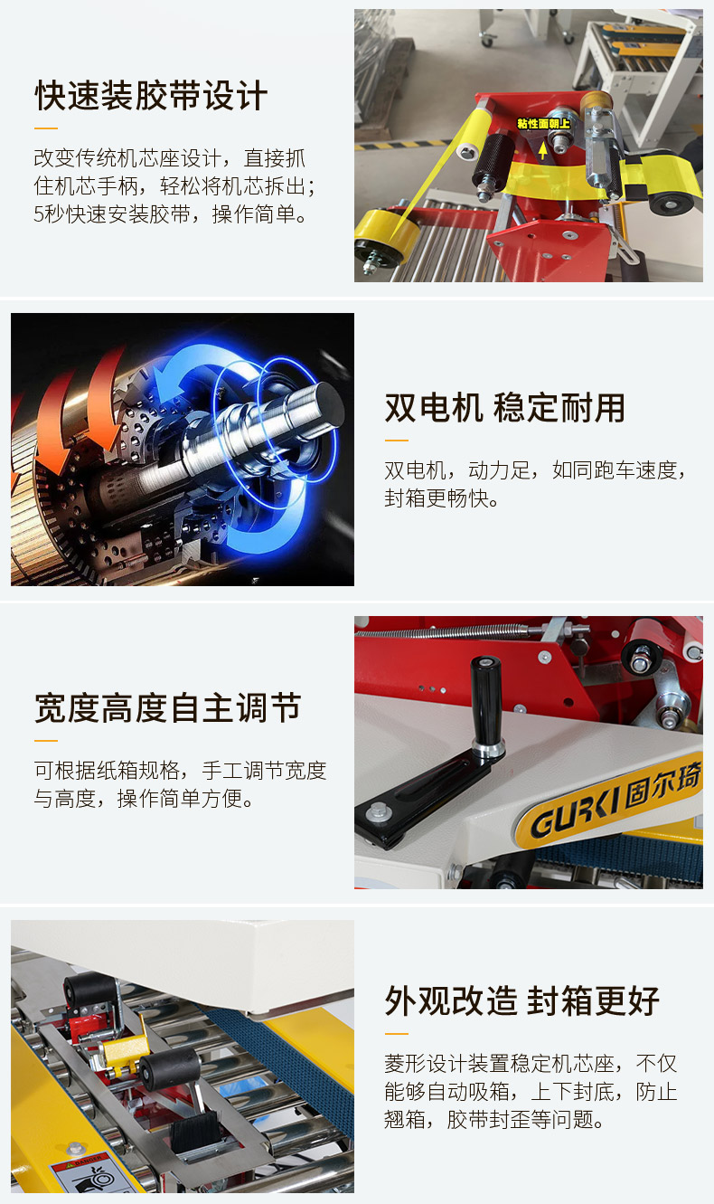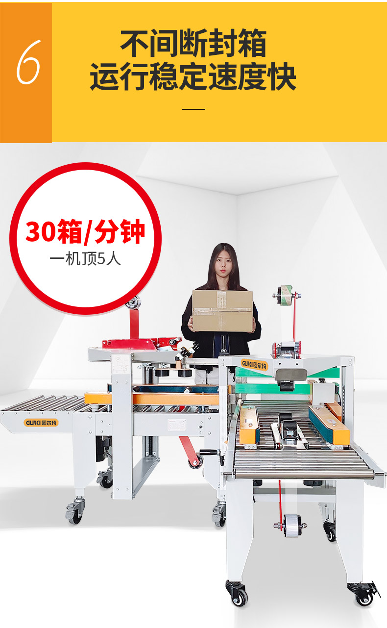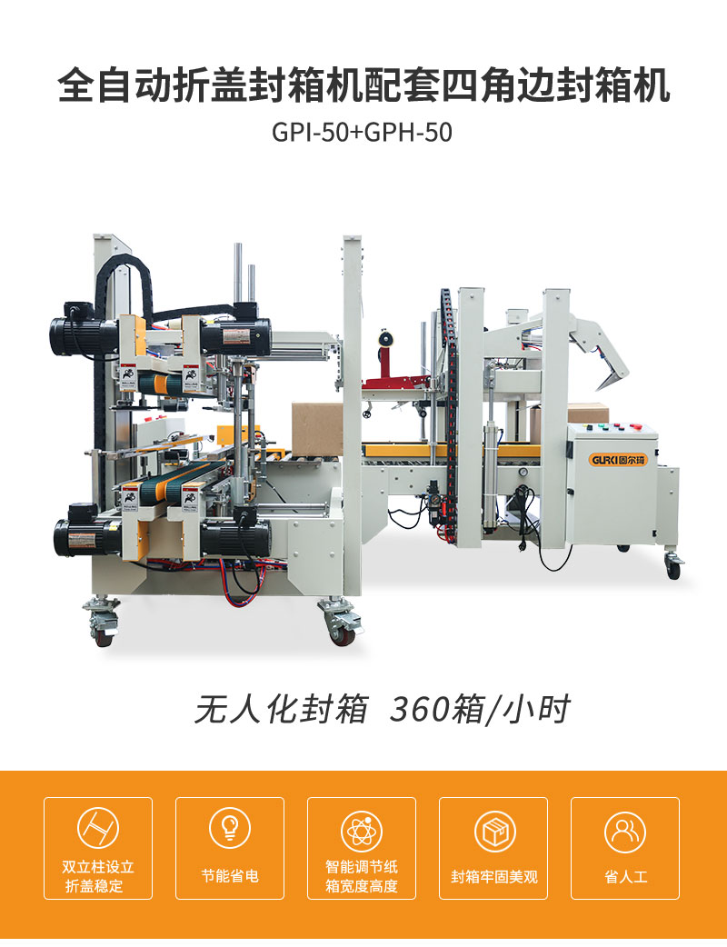 全自動折蓋封箱機配套全自動四角邊封箱機適合同一時段對多種規(guī)格紙箱進行全自動工字型封箱,無需人工再調(diào)節(jié),不僅節(jié)省人工還提高效率。該款封箱機廣泛應(yīng)用于食品、醫(yī)藥、日化、玩具、電子、印刷等各行業(yè)。