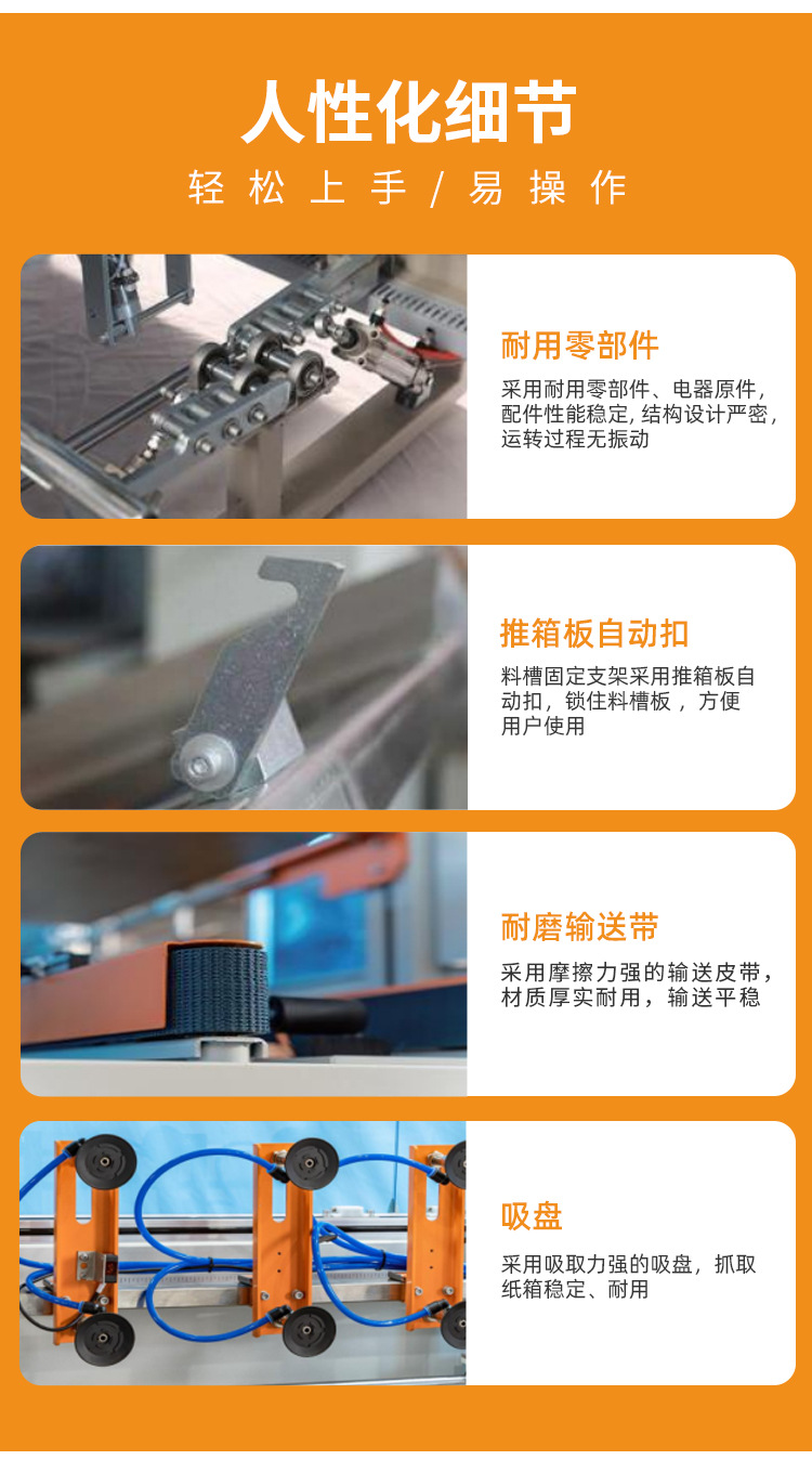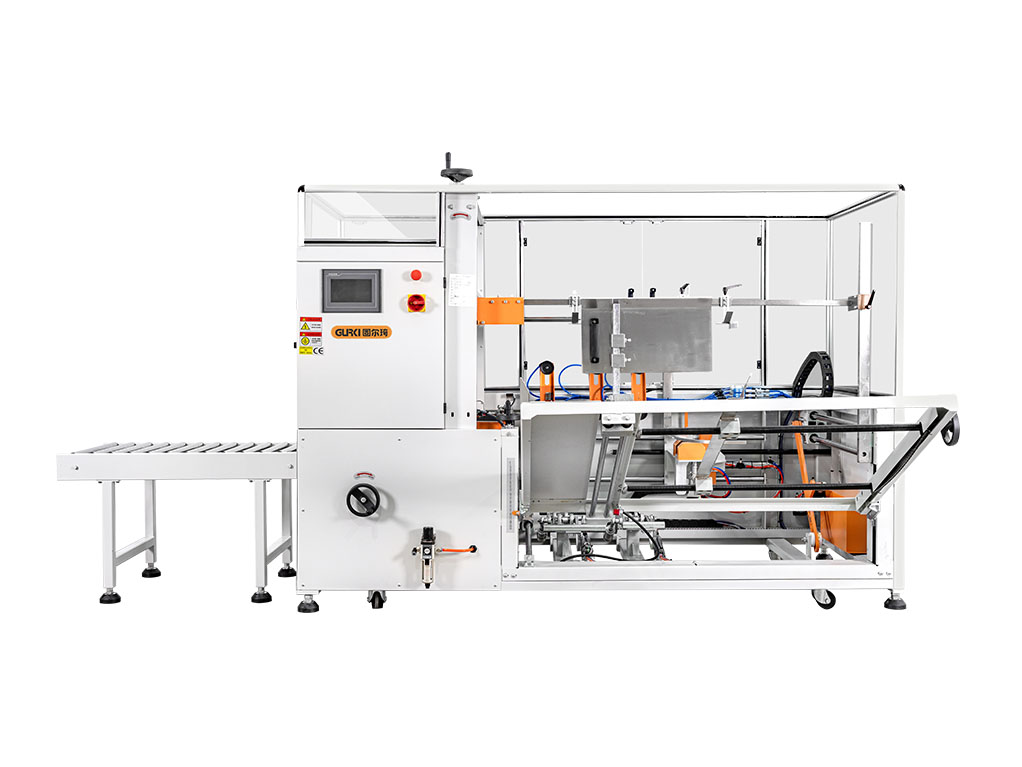 自動開箱機(jī)GPK-50E是自動將疊成紙板的箱板自動打開、箱子底部按程序自動折合成形、下底折葉折曲,并用膠帶密封后輸送給裝箱機(jī)的專用設(shè)備,機(jī)器采用PLC+人機(jī)界面控制,折底不停留,輸送中自動完成折底、封底;同時完成吸箱、成型、折底、封底整個過程。操作方便、維修簡單、性能穩(wěn)定。該款開箱機(jī)已廣泛用于食品、醫(yī)藥、飲料、煙草、日化、電子等各行業(yè)。
